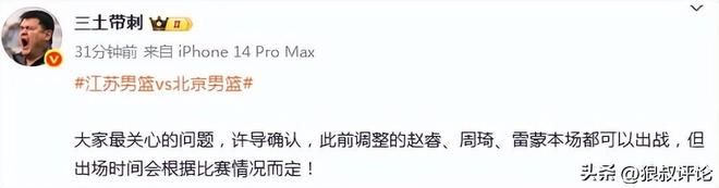 北京时间12月13日,CBA常规赛继续开打,北京男篮对阵江苏男篮。